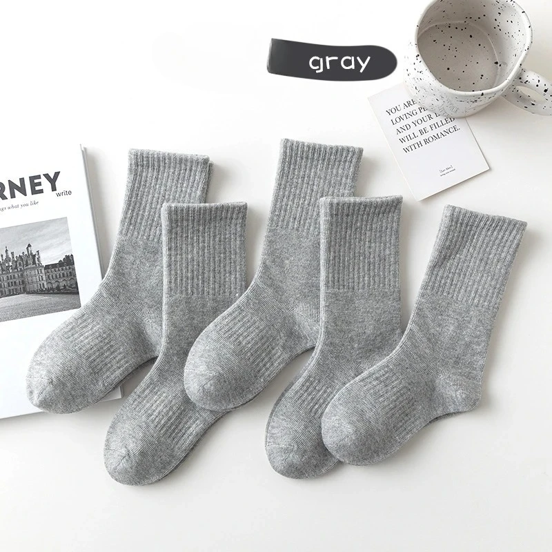 5 Pairs 100% Cotton Children Long Tube Socks Girls Boys Baby Autumn Winter Warm White Black Student Sports Socks for 1-12 Year