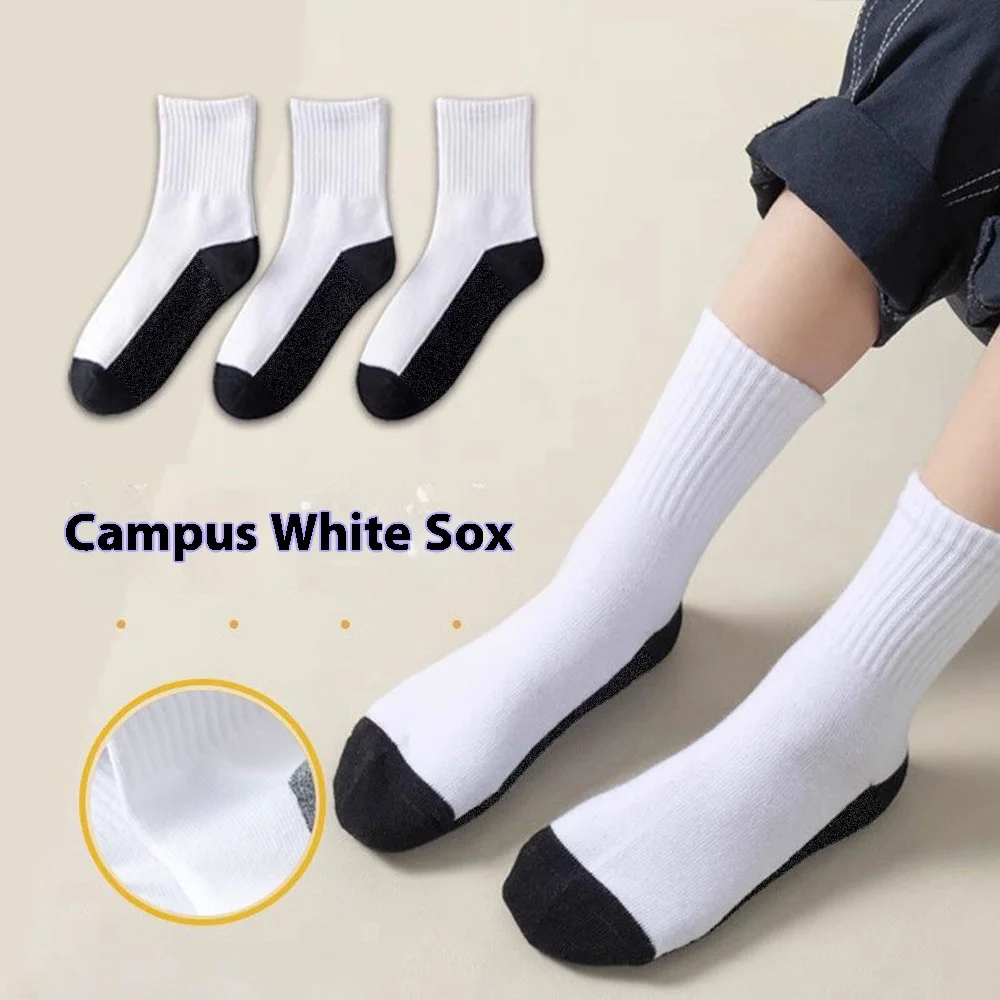 Boys and Girls' Sports Socks White Children's Mid Tube Socks Baby Primary School Students' Cotton Socks Four Seasons