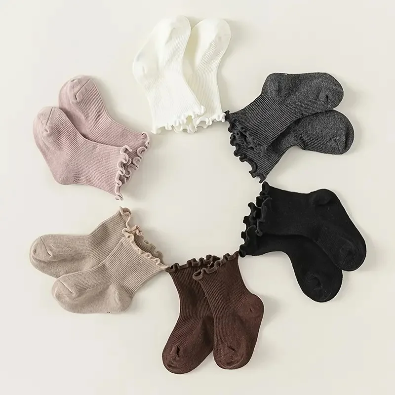 5 Pairs Baby Socks Spring Autumn Pure Cotton Loose Mouth Ruffled Edge Children'S Baby Mid Tube Socks Girls' Lace Socks