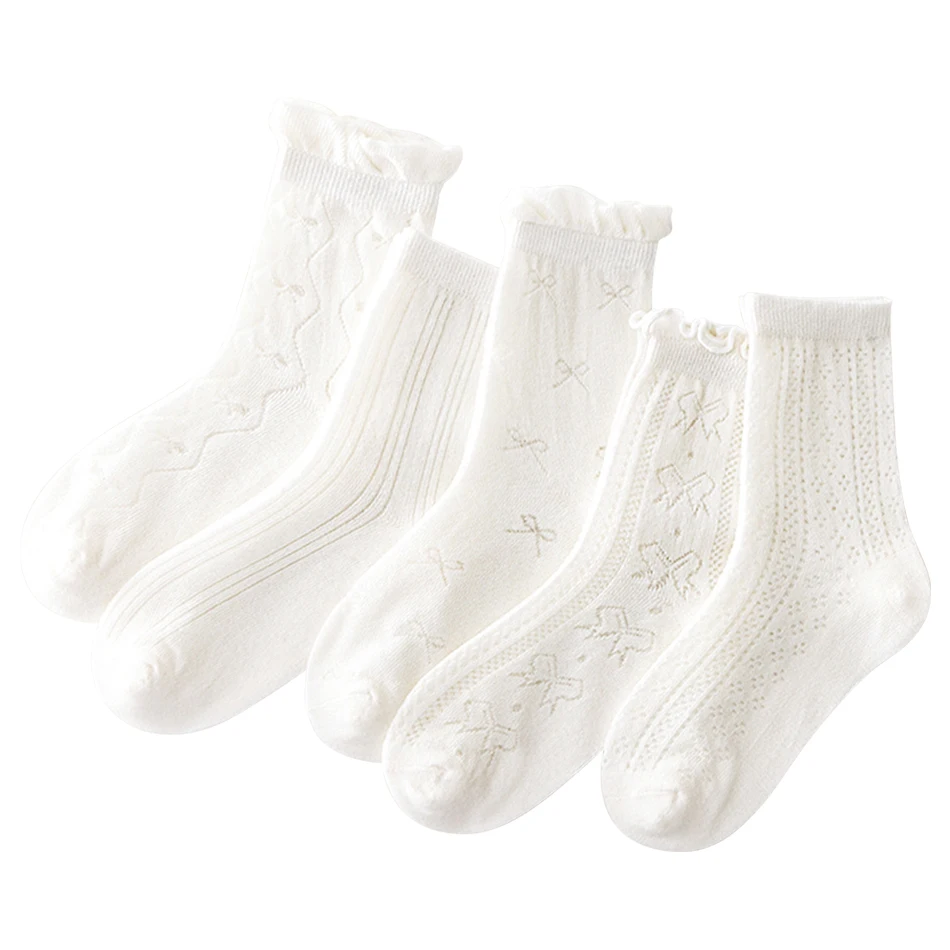5 Pairs/Pack Girls Princess Lace Socks Summer Thin White Lolita Ankle Socks Breathable Stocking for Children Kids Casual Clothes