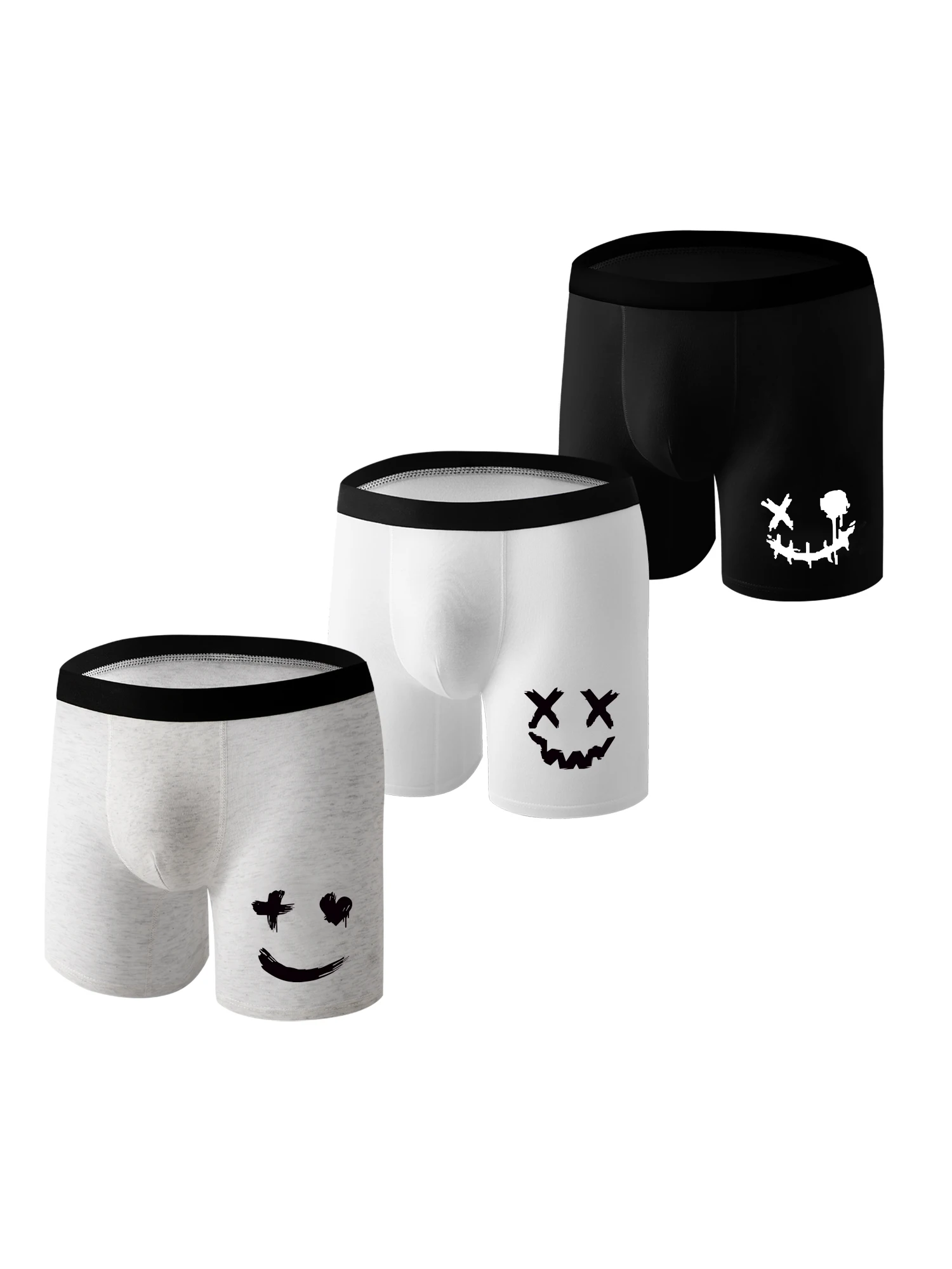 3pcs Boys Underwear Boxer Briefs Set Black Gray White Fashion Smile Pattern Solid Color Soft Comfortable Cotton Junior Sports Bo