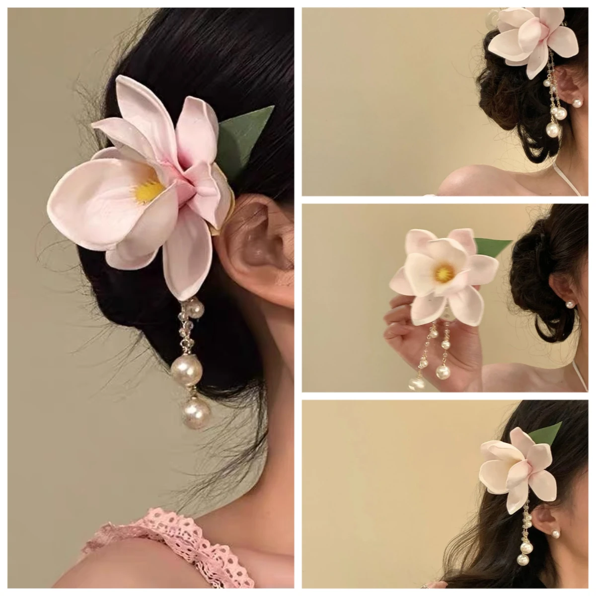 1pc Under the Moon Flower Dai Super Fairy Sweet Hair Clip Pink Magnolia Hair Clip Atmosphere Headwear New Grab Clip