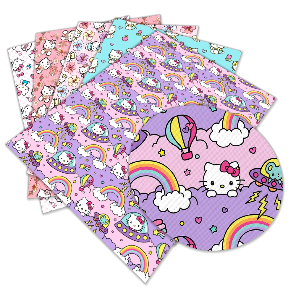 Sanrio Cartoon Hello Kitty Print Artificial leather DIY Earring Hair Bow Bag Crafts faux Leather  Read more