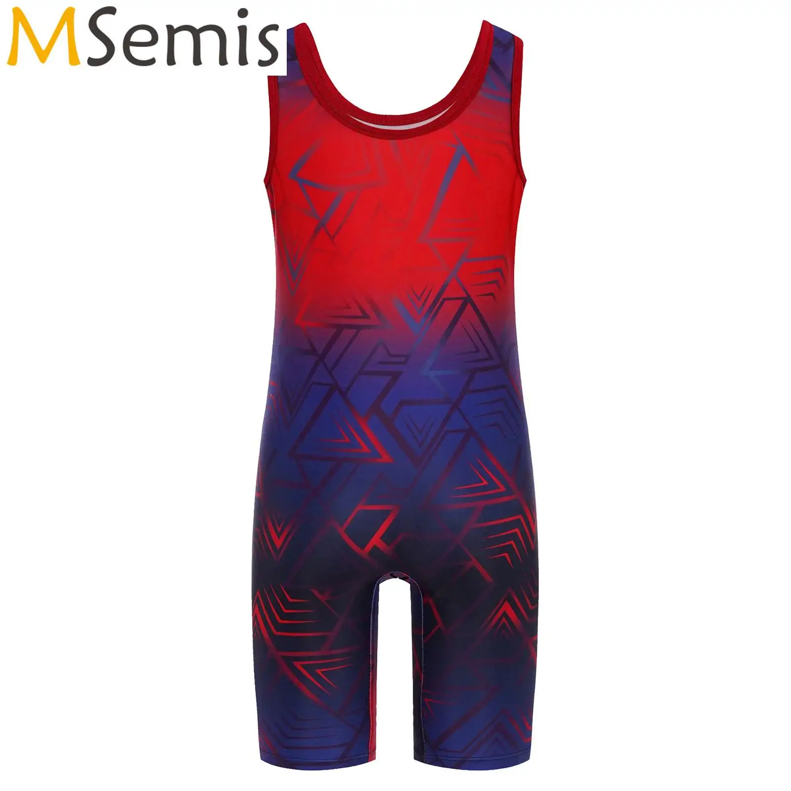 Kids Boys Swimsuit Geometric Printed Jumpsuit Swimsuit Wrestling Singlet Swimming Costume Sports Bodysuit Cycling Gym Fitness