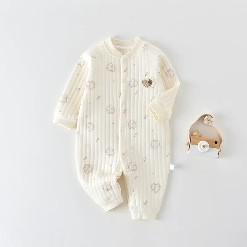 Baby Boy's Overalls 0-24M Cotton Bodysuit for Newborns Girls Quilted Air Cotton Onesie Animal Print Thickened Warm Soft Bodysuit