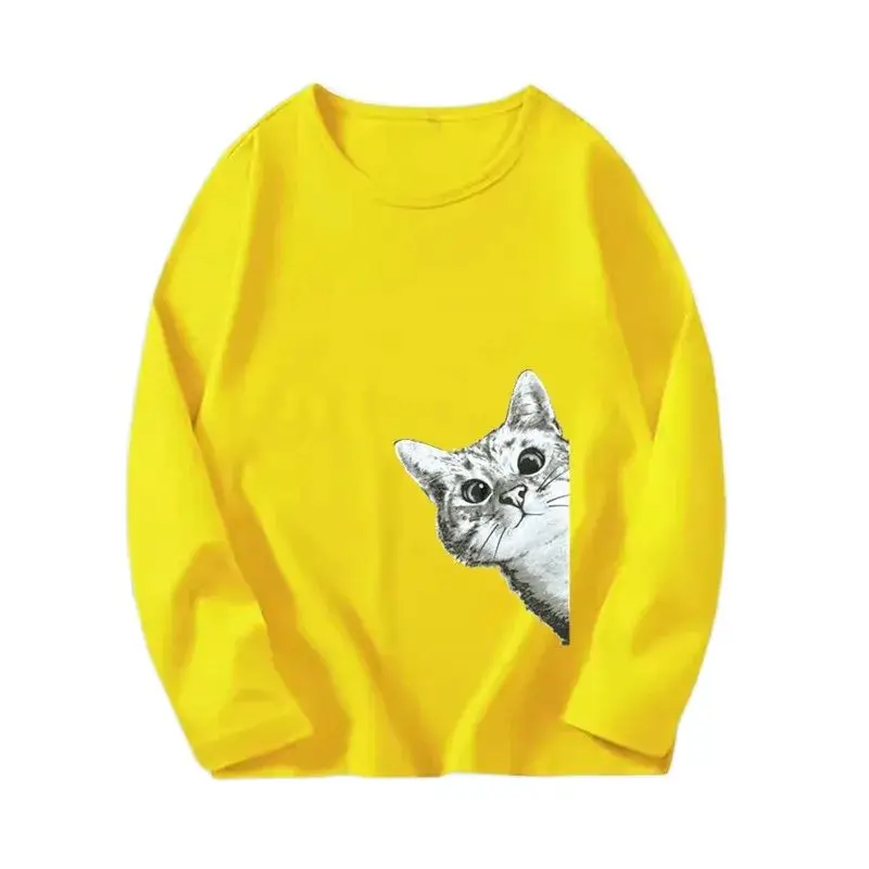 Cotton T-shirts for Kids Cool Cat Animal Print T Shirts Spring Autum Long Sleeve T-shirt Hip Hop Streetwear Funny Tops Tees