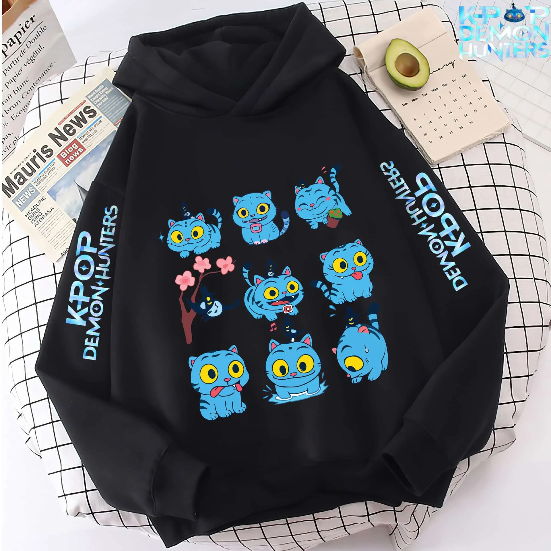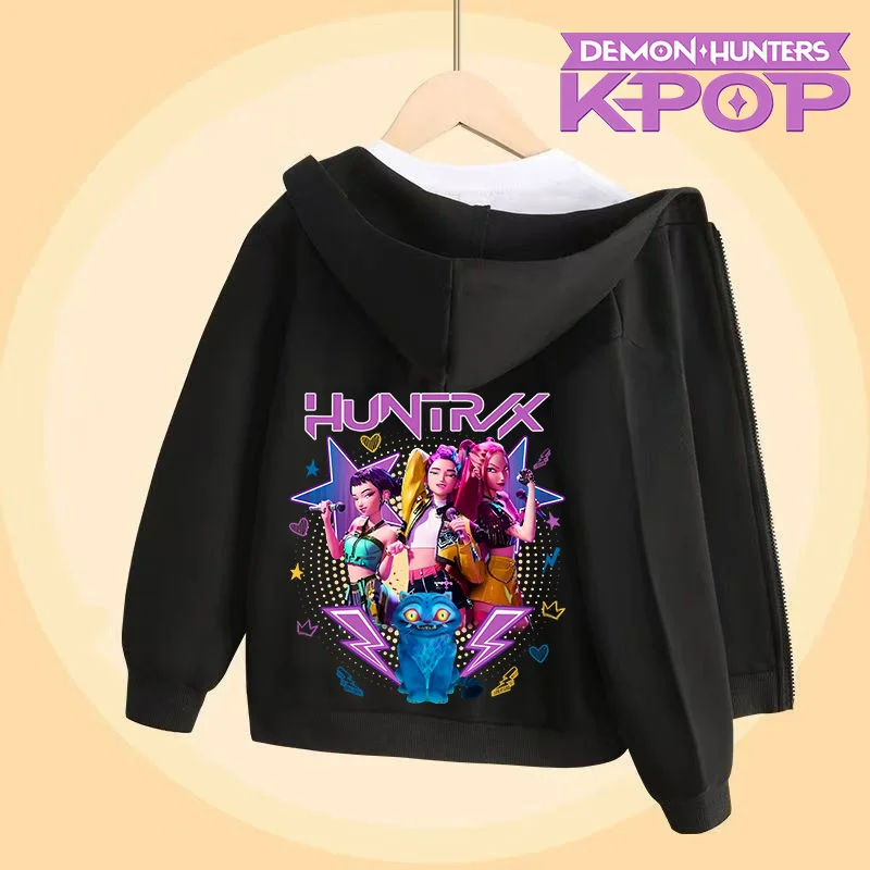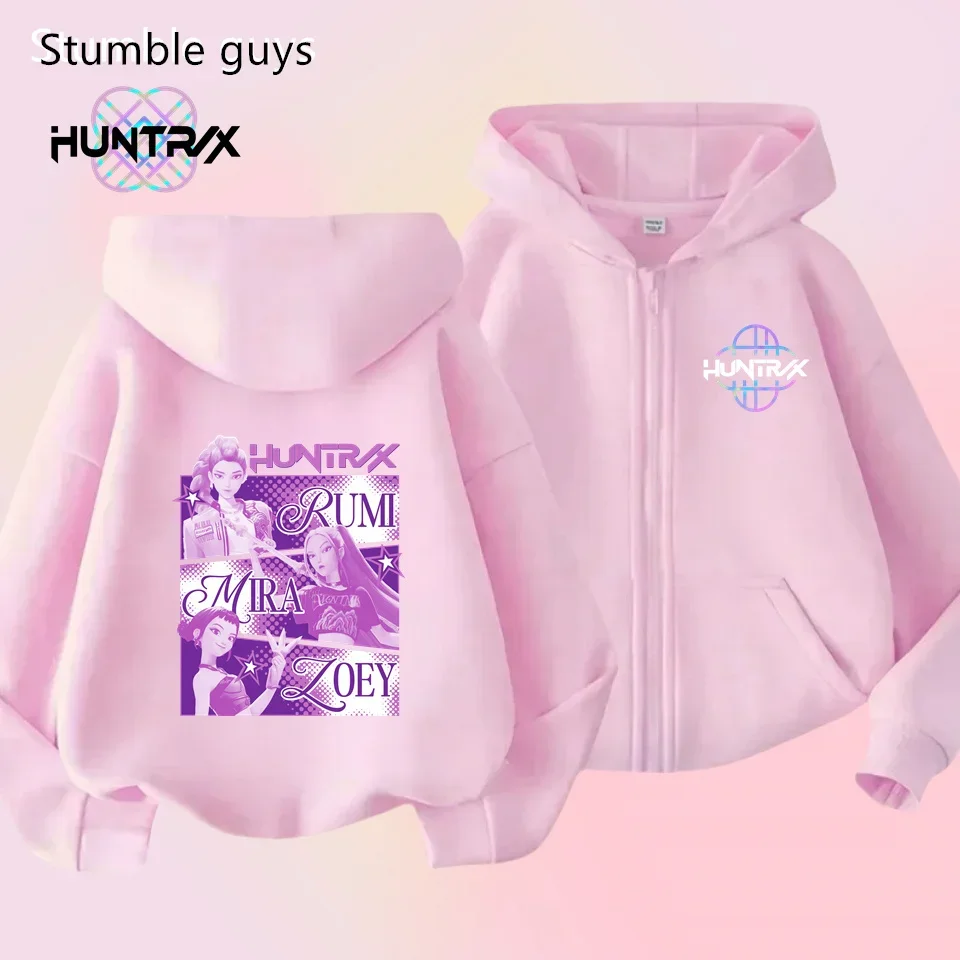 Autumn Winter KPop Demon Hunters Huntrix Zipper Hoodie – Girls Boys Full-Zip Anime Graphic Sweatshirt for K-Pop Animation Fans