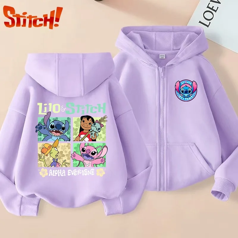 Autumn Disney Kawaii Cute Stitch Zipper Hoodie for Kids Clothing for Girls Clothing for Babies for Boys Casual Hoodie for Fall