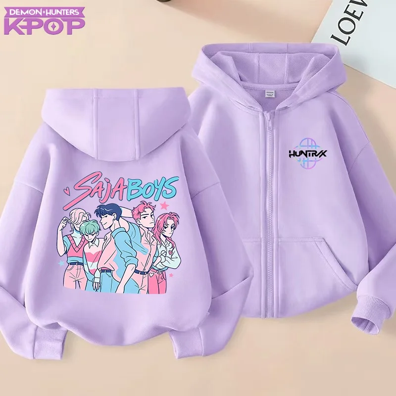 Kid Girl Boy Sweatshirt Zipper Purple Hoody Baby Casual Tops Funny Zip Up Sweatshirts Kpop Demon Hunters Hoodie Children Clothes