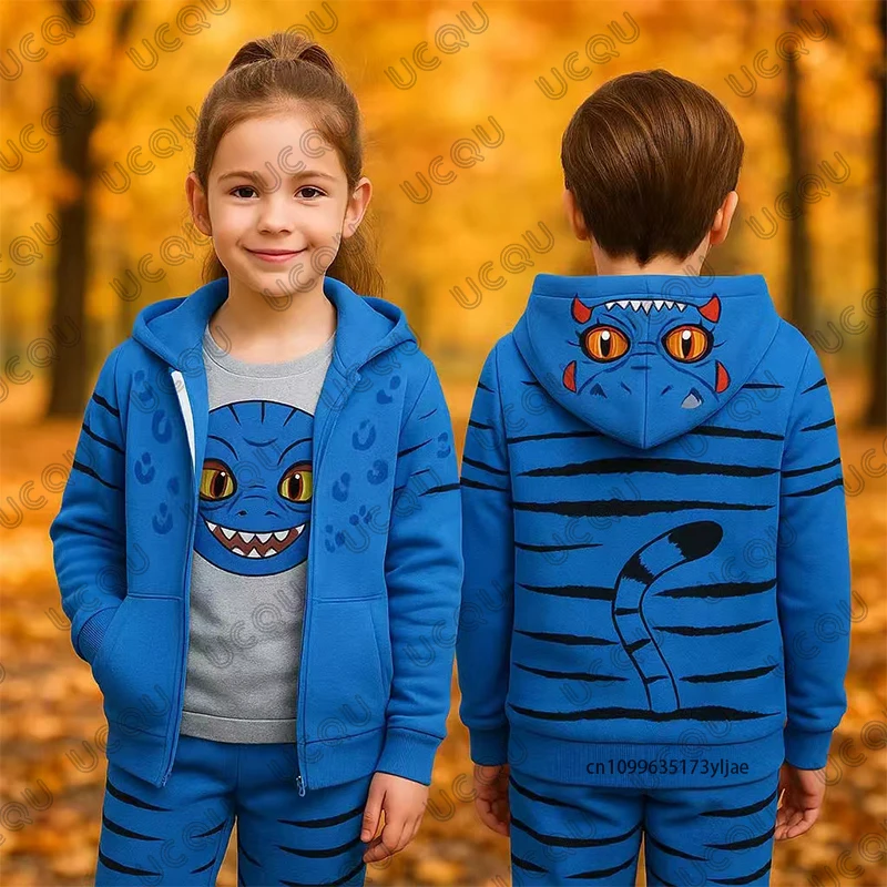 Hot Movie Kpop Demon Hunters Tiger Print Zipper Hoodies For Children Autumn Winter Long Sleeve Sweatshirt Casual Kids/Adult Tops