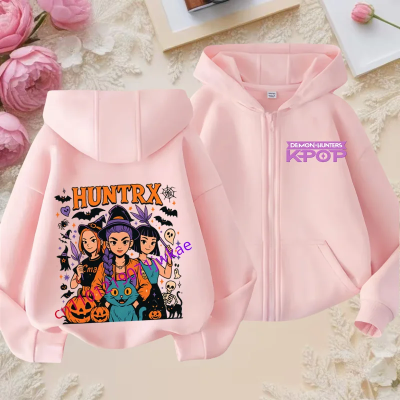 Kid Girl Boy Hallowmas Sweatshirt Zipper Hoody Baby Casual Tops Zip Up Sweatshirts Kpop Demon Hunters Hoodie Children Clothes