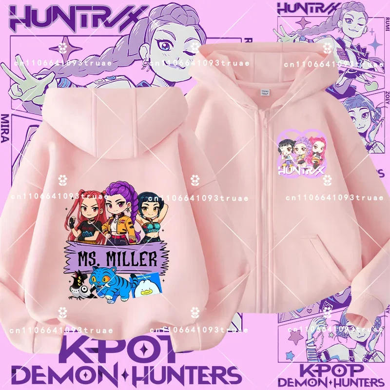 2026 Kpop Demon Hunters Hoodie Children Clothes Kid Girl Boy Sweatshirt Zipper Hoody Baby Casual Top Funny Zip Up Sweatshirts