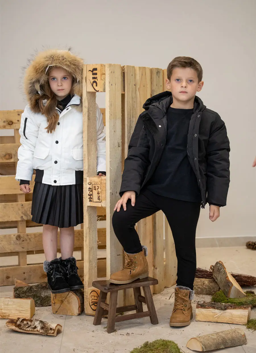 Clearance sale AS Fashion 2023 Matte bomber coats for kids filled down warm jacket with detachable nature fur