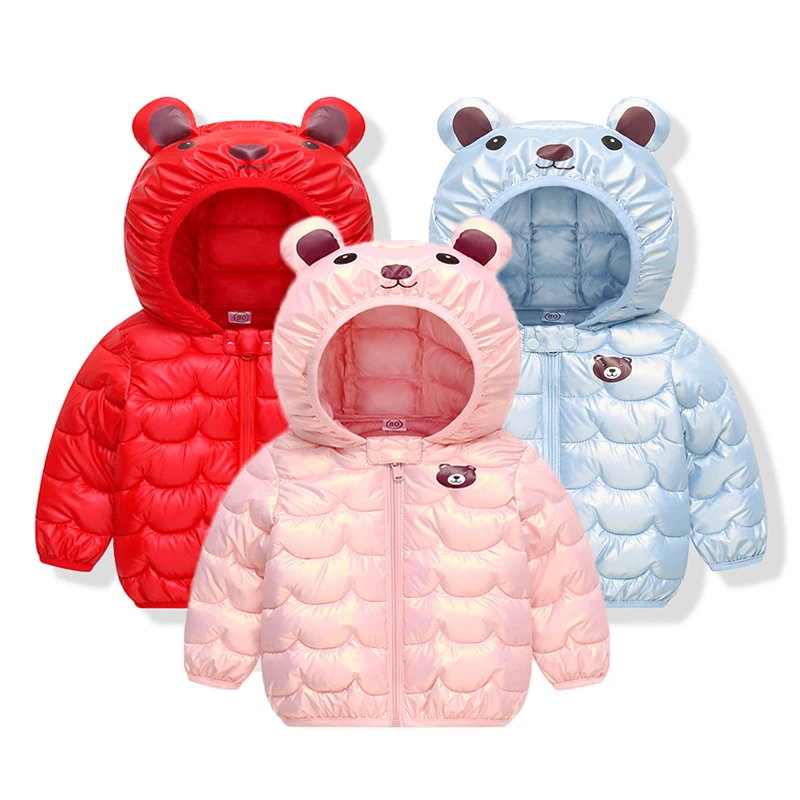1-5 Years Kids Winter Coat Baby Girls Thin Style Hooded Jacket Children Neutral Bear Pattern Warm Parka Outerwear Boy Clothes