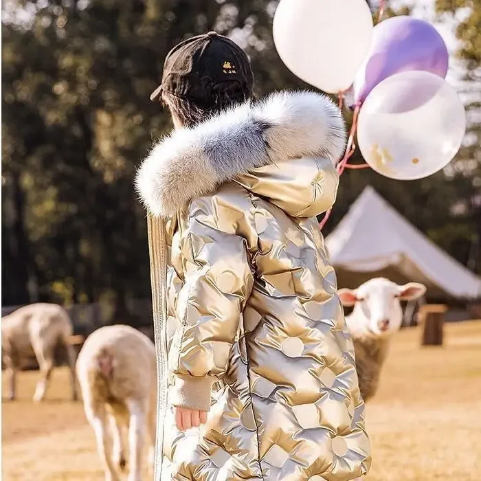 2023 Girls Parka Long Coats Winter Waterproof Fur Collar Hooded Jackets Big Kids Thick Warm Cotton Outerwear Teenage Snowsuit