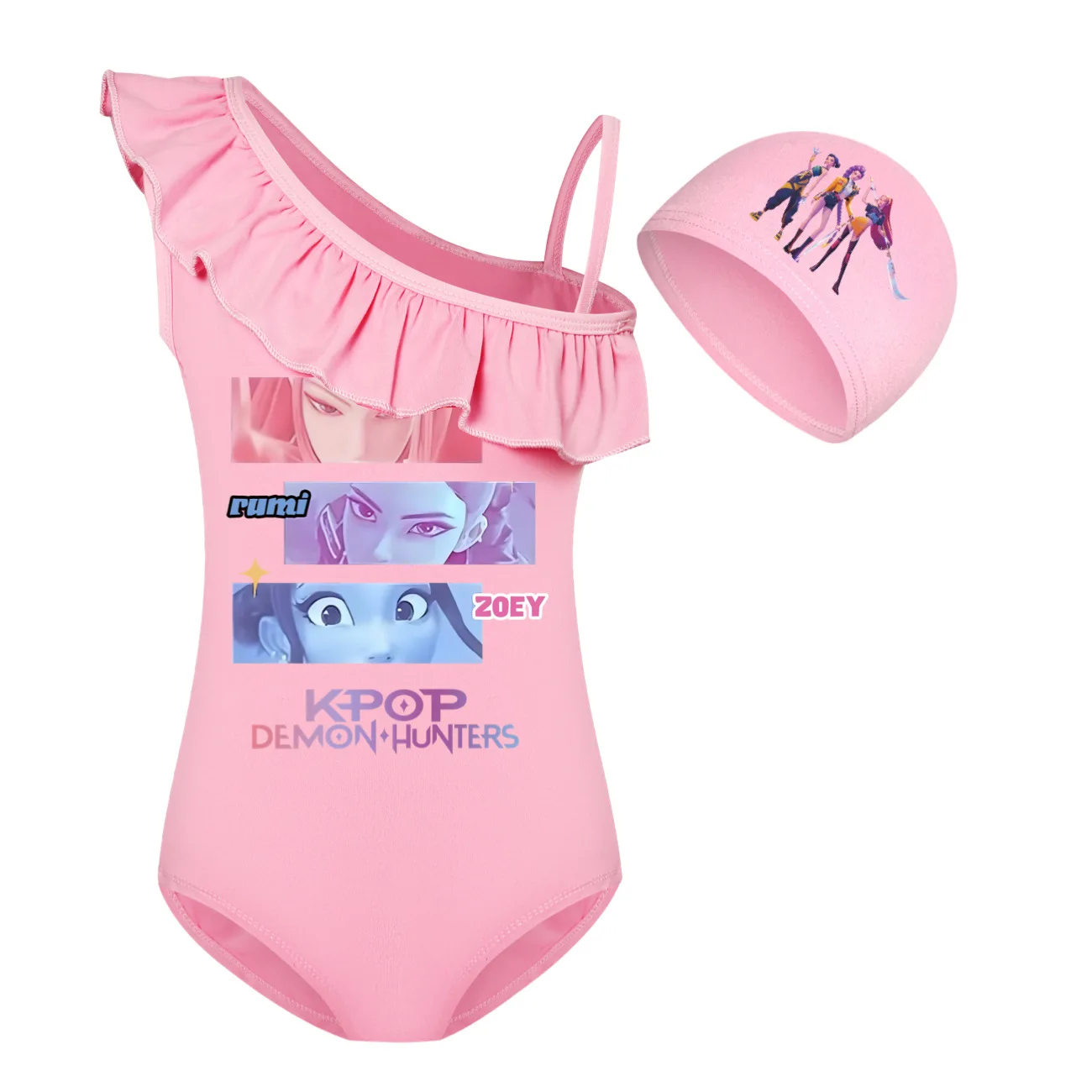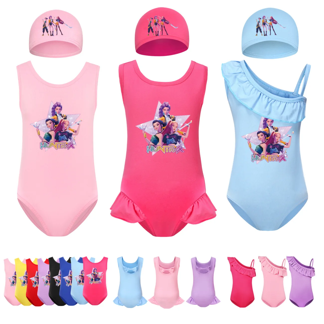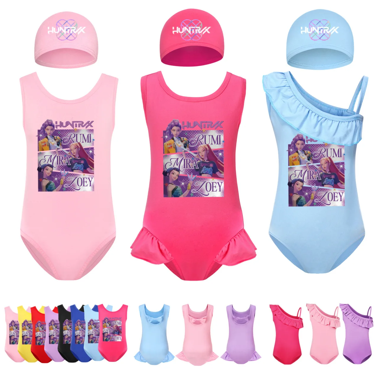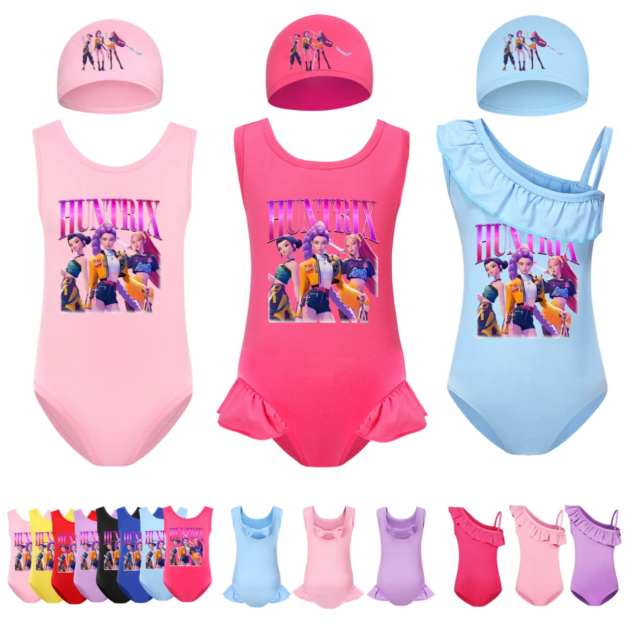NEW Swimsuit Kids KPop Demon Hunters Huntrix Sleeveless One Piece Swimwear Girls Ruffles Bathing Suit Children's BodySuit