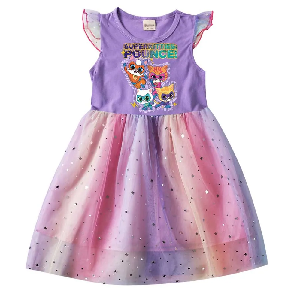 Superkitties Dress Kids Christmas TShirt Mesh Sequin Dresses Toddler Girls Princess Vestidos Children Wedding Party Clothes