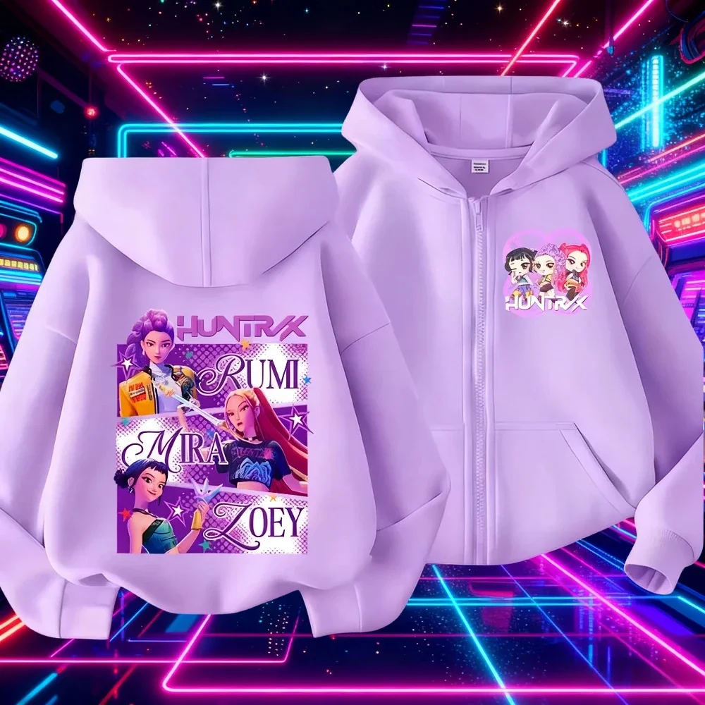 New Funny Zip Up Sweatshirts Kpop Demon Hunters Hoodie Children Clothes Kid Girl Boy Sweatshirt Zipper Hoody Baby Casual Top