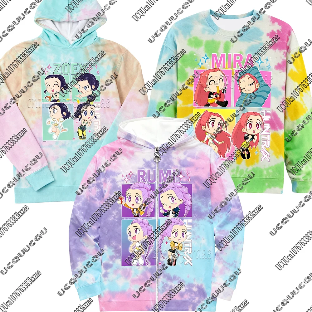 Kpop Demon Hunters Huntr-X Zipper Hoodies 3D Tie-Dye Children Clothes Girls Boys Hoody Mira Rumi Zoey Sweatshirts Men Women Tops