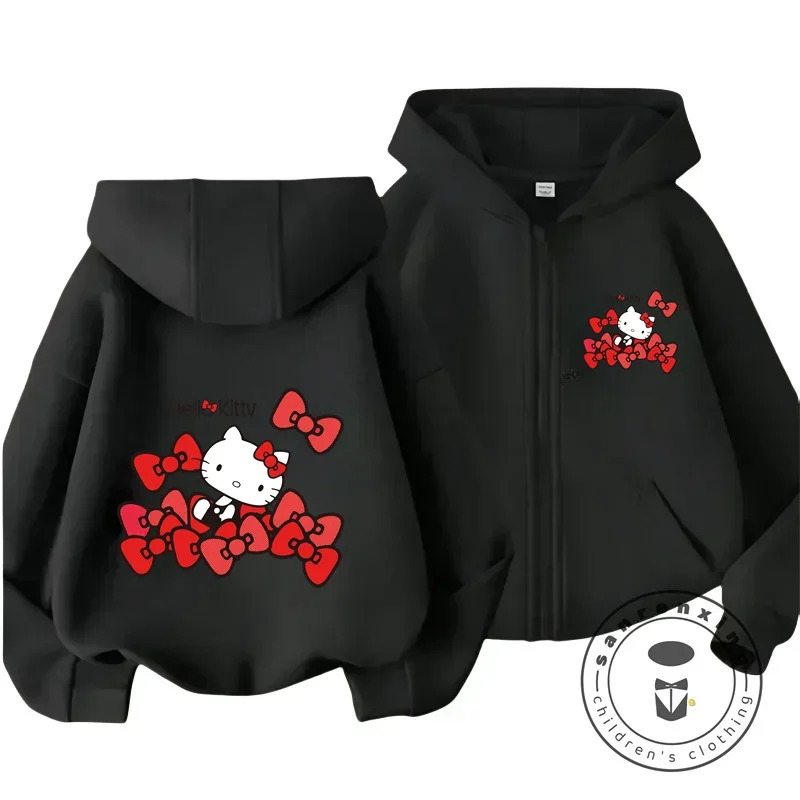 Boys Girls Hello Kitty Hoodies Long Sleeves Cartoon Sweatshirt Baby Children Clothing Autumn Zipper Cardigan Kids Street Wear