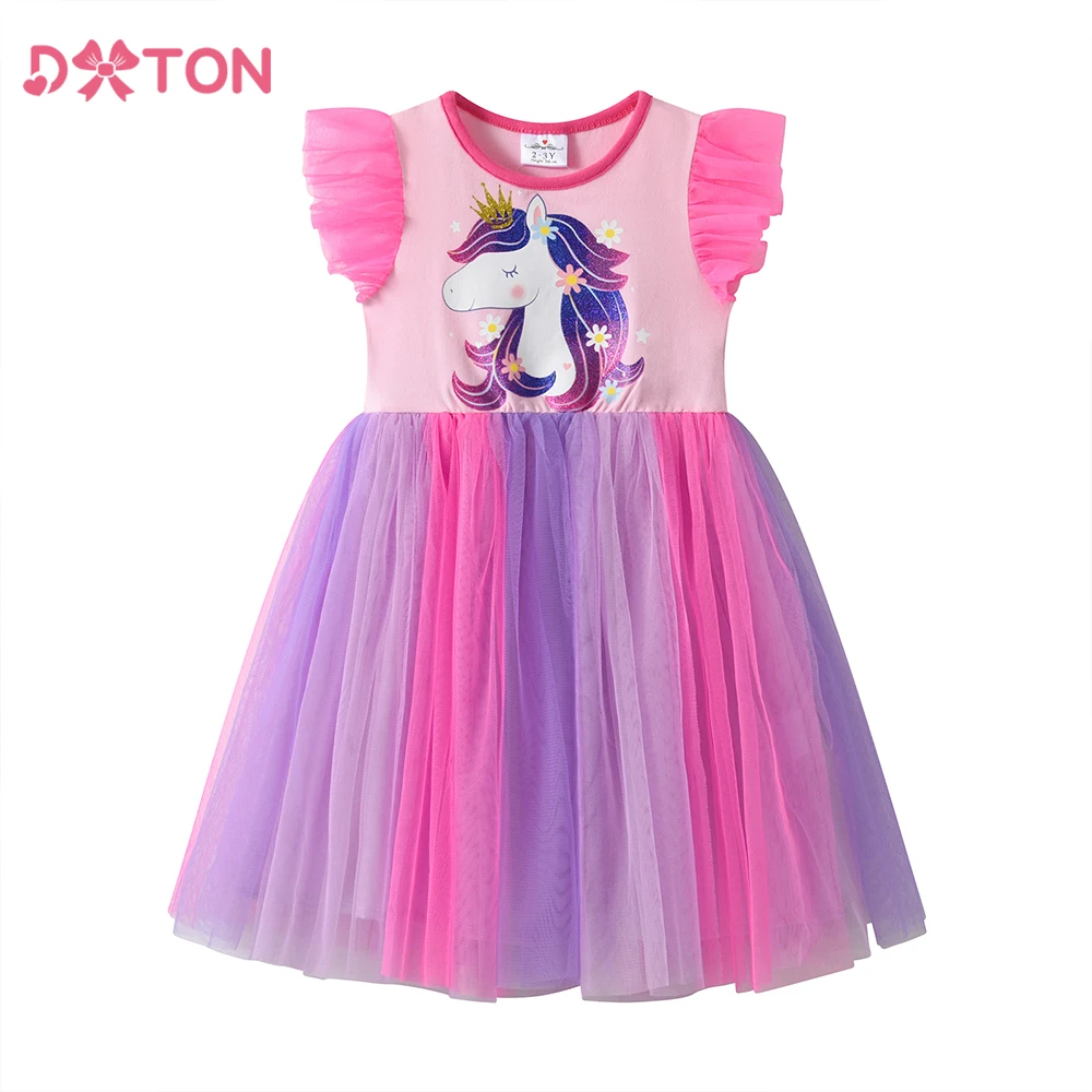 DXTON Sleeveless Children Dresses Summer Vacation Kids Girls Dress Gradient Tulle Patchwork Unicorn Toddler Cute Cartoon Clothes  Read more