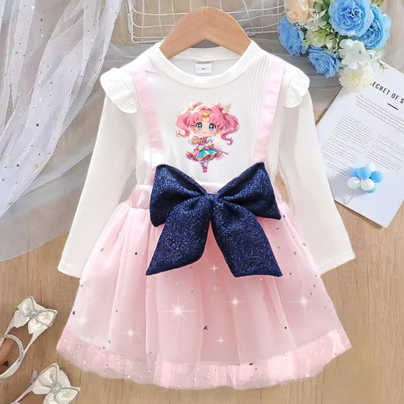 Sailor Moon Kids Clothes Girls Cute Dress Spring Long Sleeves Dresses Cartoon Anime Graphic Print Children Clothing Party Gifts