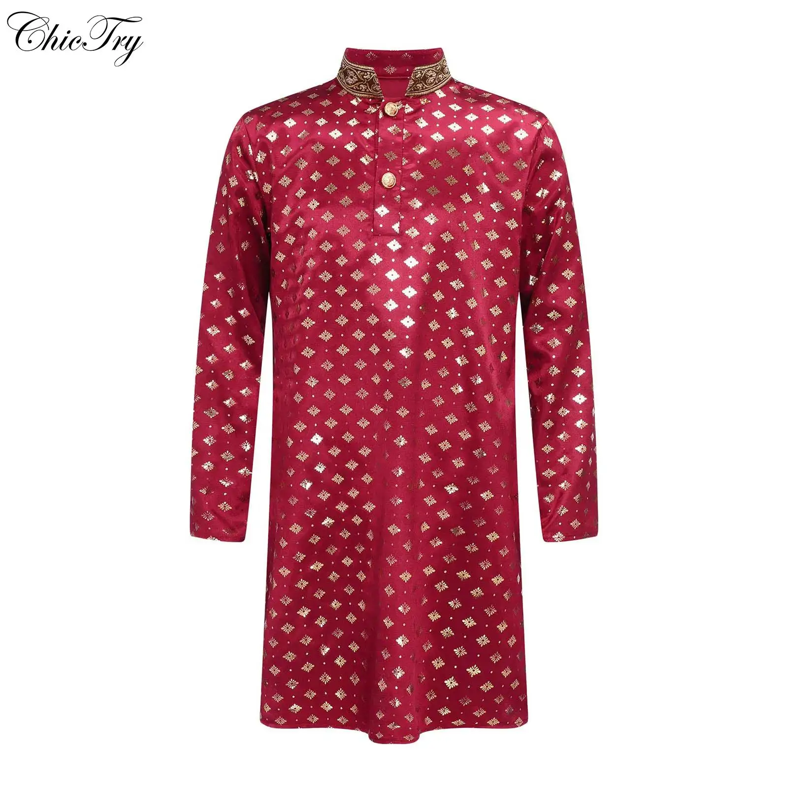Kids Boys Girls Unisex Indian Clothing Traditional Wear Stand Collar Long Sleeves Graphic Print Silk Kurta Tops Festival Holiday