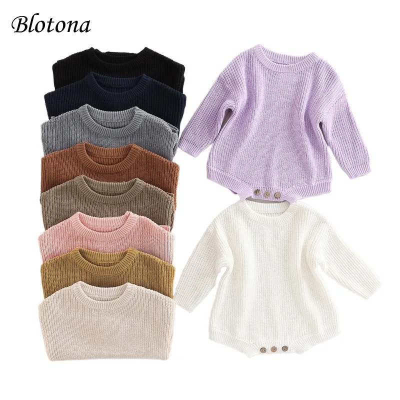Newest Newborn Baby Knitted Long Sleeve Autumn Winter Sweater Romper, O-Neck Solid Color Crotch Button Bodysuit, 0-24Months