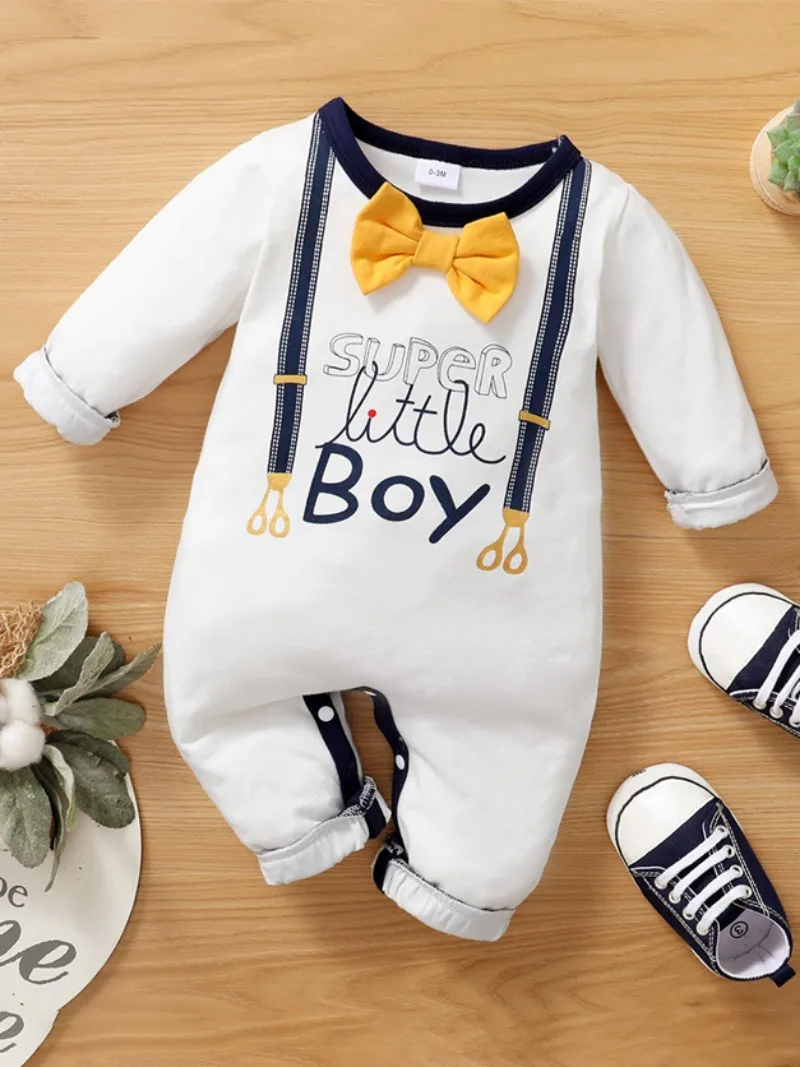Newborn Baby Boy Romper Cute Bowtie Long Sleeve Bodysuit Spring and Autumn Clothing for Toddler ​Boy 0-18 Months