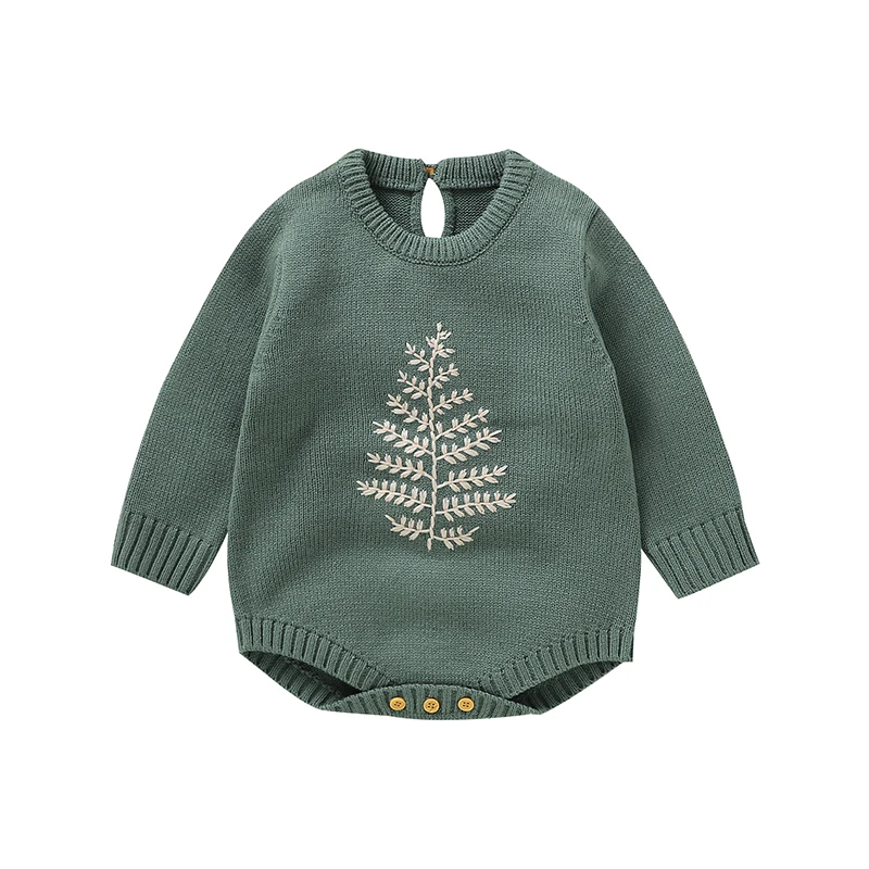 Fresh Wheatear Print Long Sleeve Knitted Acrylic Baby Boys & Girls Spring & Autumn Rompers Newborn Bodysuit Infant Jumpsuit