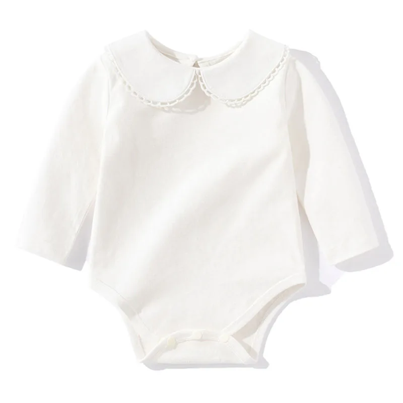 Newborn Baby Girl Spring Autumn Bodysuit Peter Pan Collar Long Sleeve Basic Jumpsuit Kid Solid Color Costumes White Shirt Outfit
