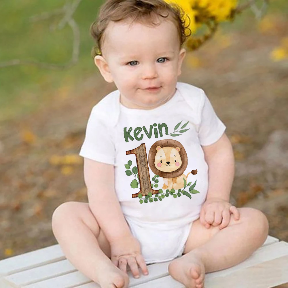 Personalised Safari Animal with Name Baby Romper Newborn Wild One Jungle Birthday Party Bodysuit Jumpsuit Infant Shower Gifts