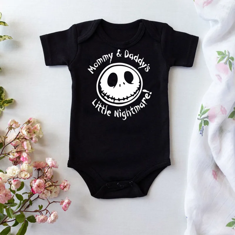 Summer Fashion Baby Halloween Costume One-piece Bodysuit Mommy and Daddy's Little Nightmare Print Baby Jumpsuit Clothes Outfits