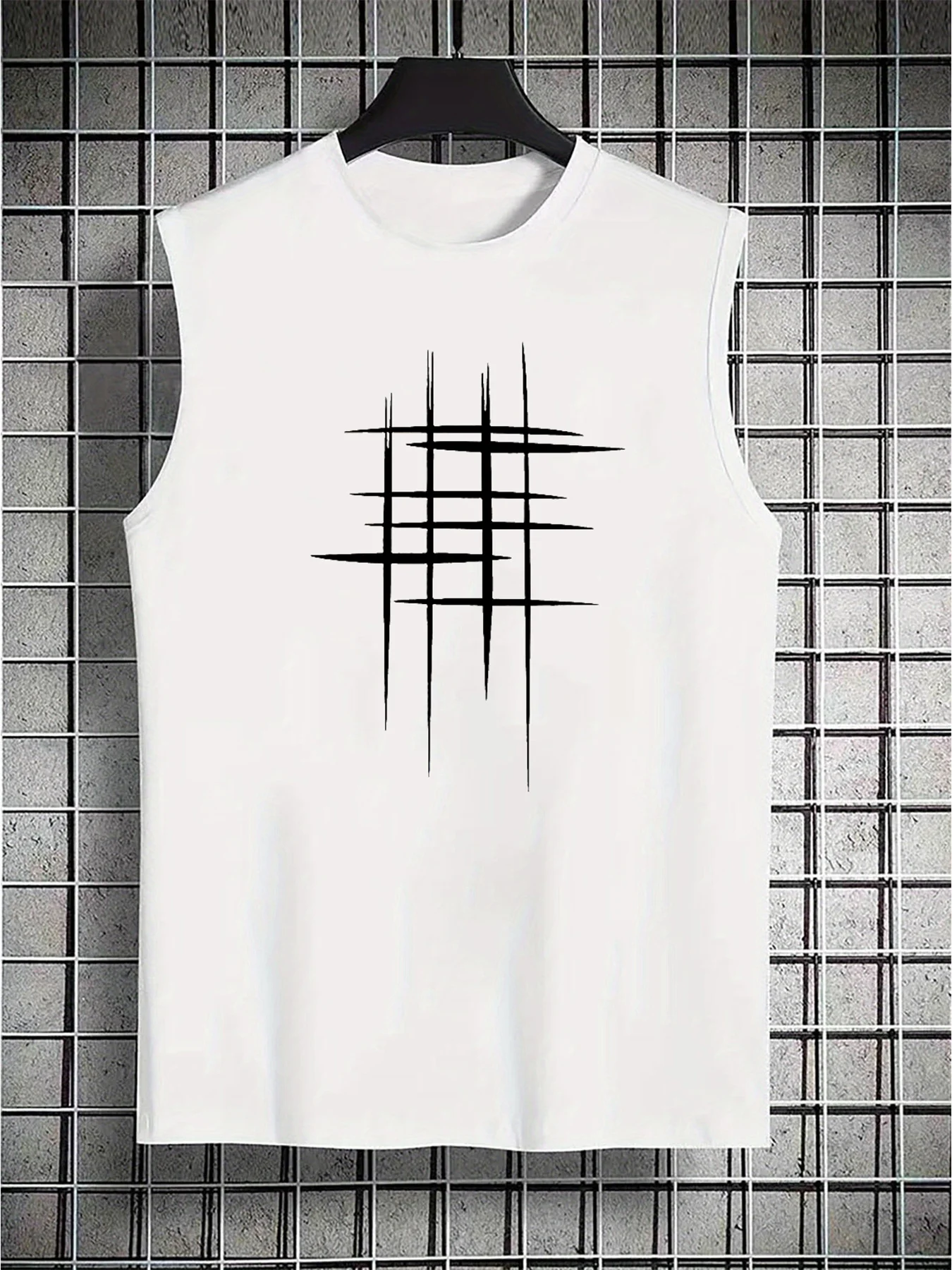 Men's summer casual sports fitness loose and simple graphic print comfortable and breathable round neck sleeveless vest