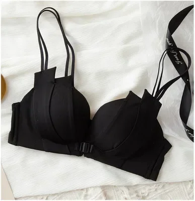 Sexy Front Button Underwear Women's Small Chest Gathered No Steel Ring Comfortable Anti-sagging Breasts Beautiful Back Black Bra