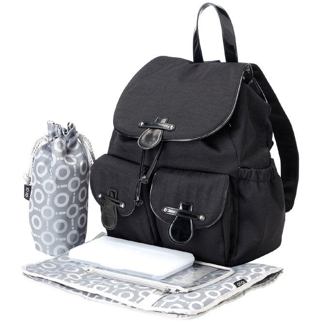 OiOi Black Nylon/Patent Backpack Diaper Bag