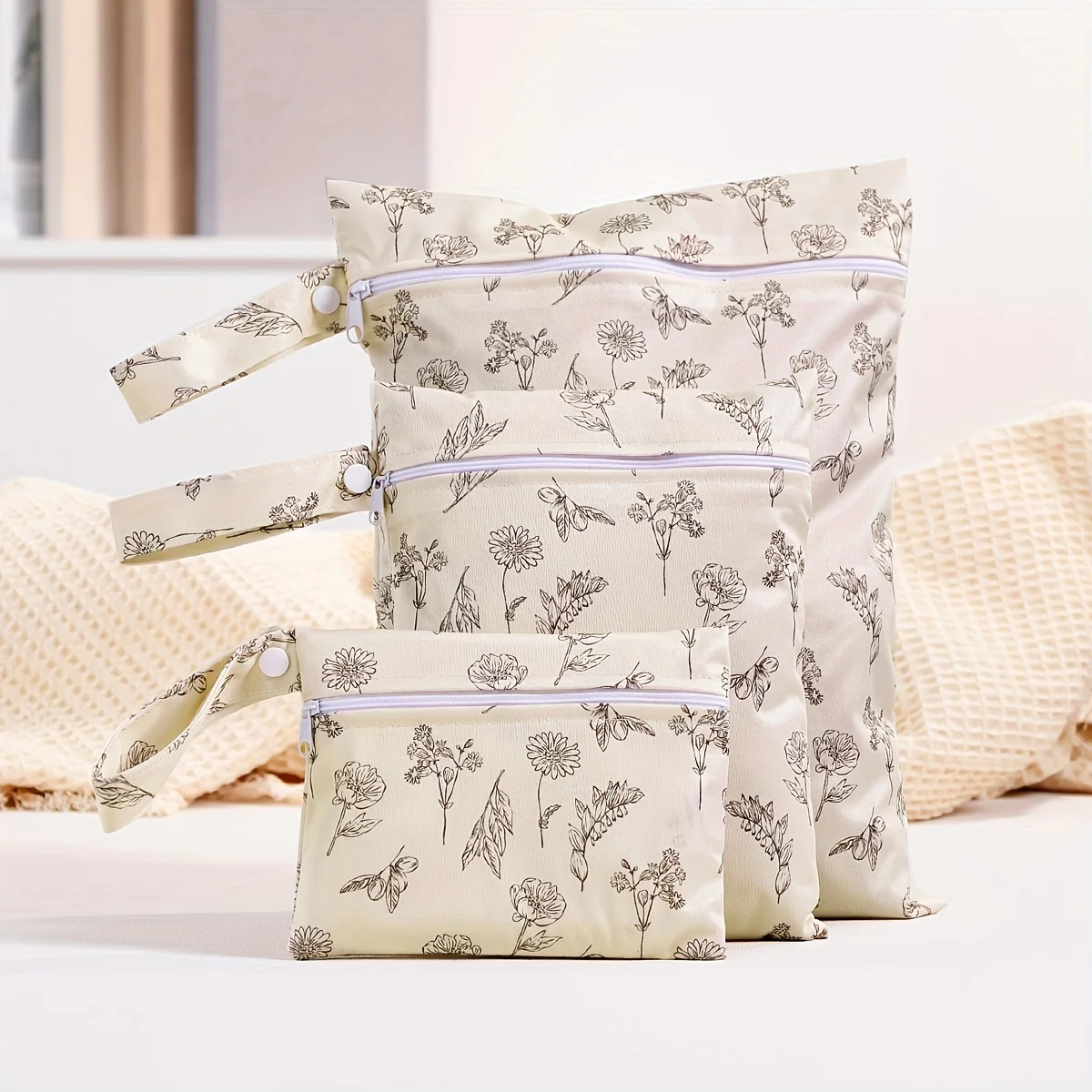Elinfant 3PCS Portable Wet Dry Bag For Swimsuits, Waterproof Diaper Bags For Cloth Diapers, Washable Reusable Storage Bag