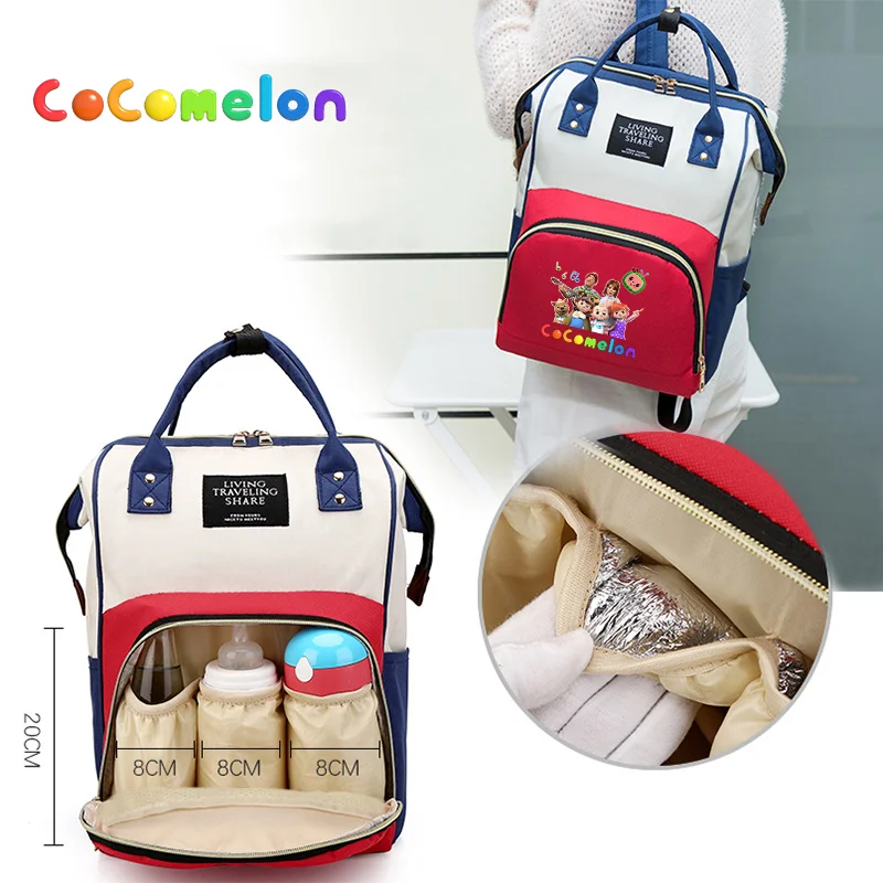 Cocomelons Mother and Baby Bag Cartoon Anime Mother Large Capacity Nappy Backpack with Changing Mat Convenient Baby Nursing Bags