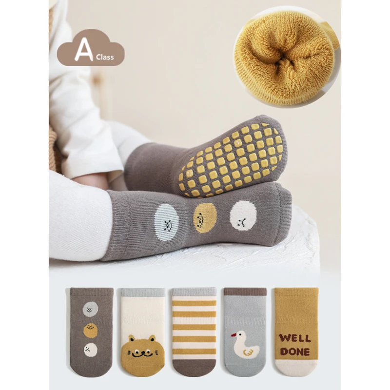3 Pairs Winter Cartoon Terry Fleece Plush Newborn Baby Socks 0-5Y Thicken Lining Anti-Slip Floor Kids Boys Stockings