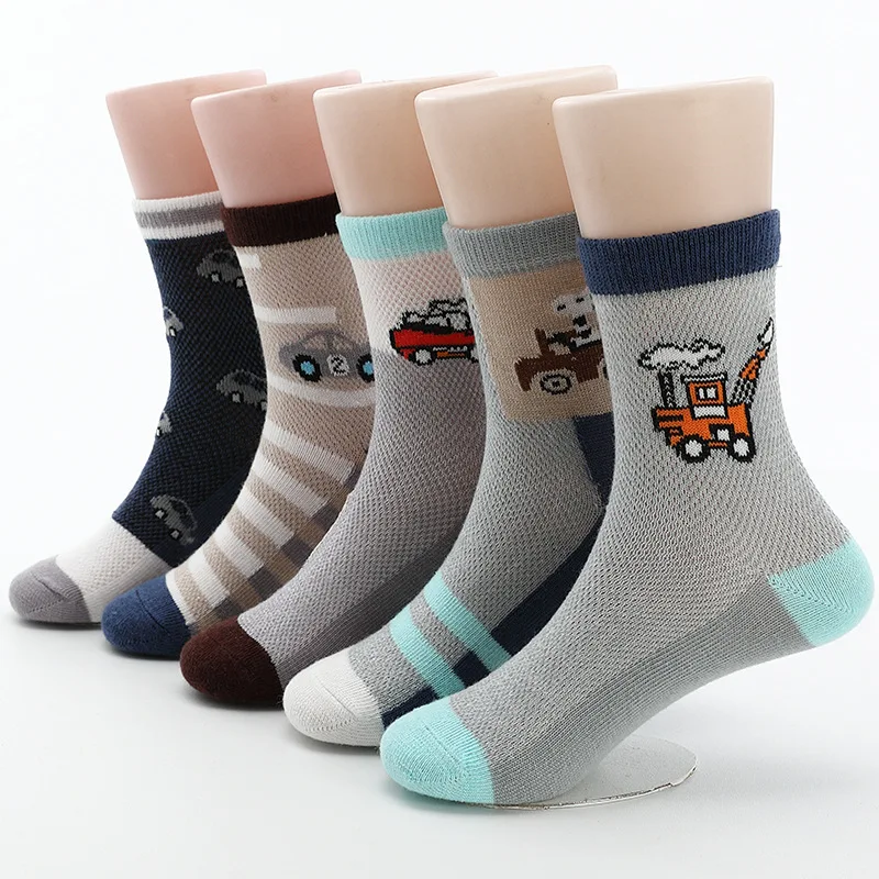 2024 New Spring Summer Children Socks Mesh breathable Car Style Cotton Boys Socks 3 -15 Year Kids Socks 5 Pairs/Lot