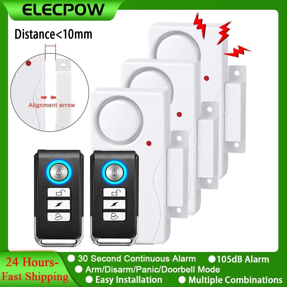 Elecpow Door Window Burglar Alarm Sensor Wireless Remote Control Anti-Theft Alarm System Kit Home Security Door Open Detectors
