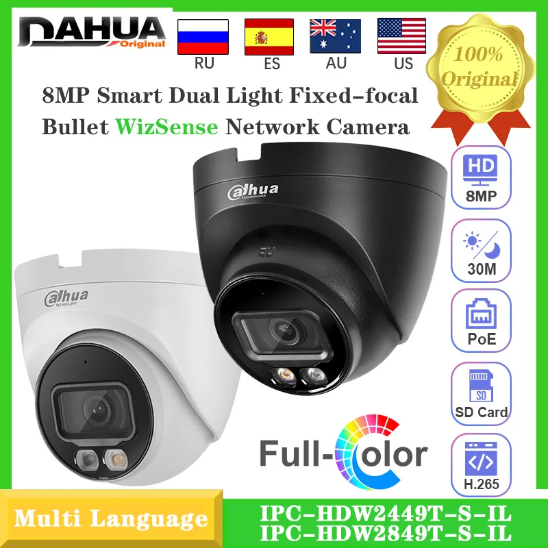 Original Dahua 4K 8MP POE IPC-HDW2849T-S-IL Full-color IP Surveillance Camera Built-in Mic Slot Network Dome IR 30m Dual Light