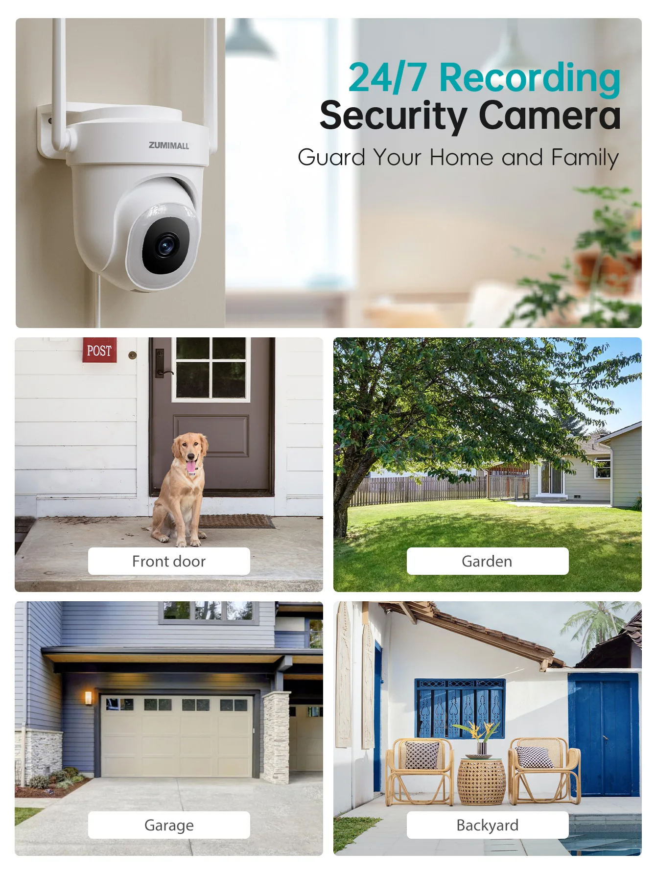 ZUMIMALL 24/7 Recording , 5MP 5G WiFi Wired Security Camera, Home and Outdoor, Plug-in Power, 360° Auto Tracking, Noise Detect