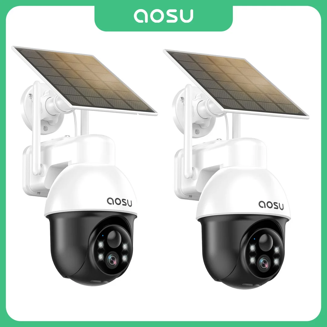 AOSU 2/3/4pcs PTZ Solar Camera 3MP 5000mAh Battery Wireless 2.4Ghz WIFI Camera PIR AI Detection 2-Way Audio Outdoor CCTV Camera