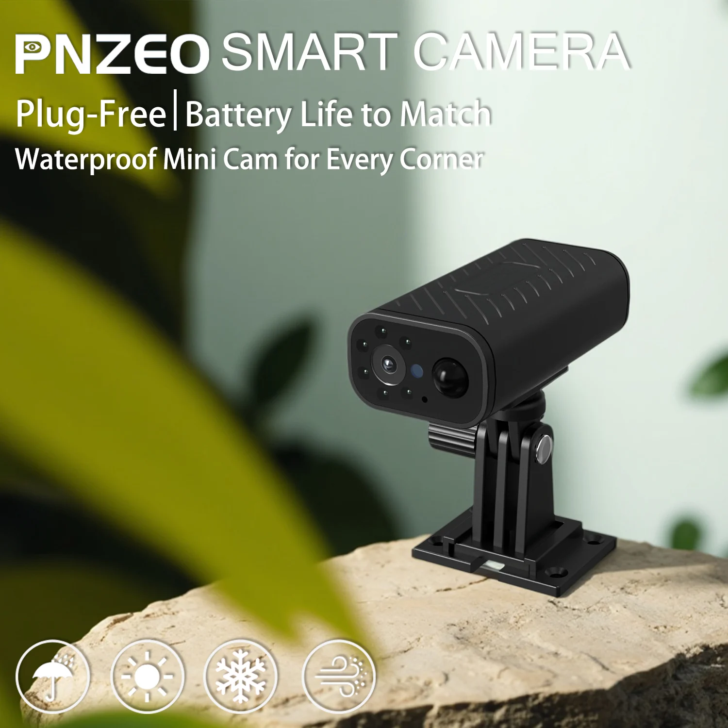 PNZEO Smart wireless Home security camera, outdoor waterproof 4K HD Low power consumption Ultra long battery life, remote ON/OFF