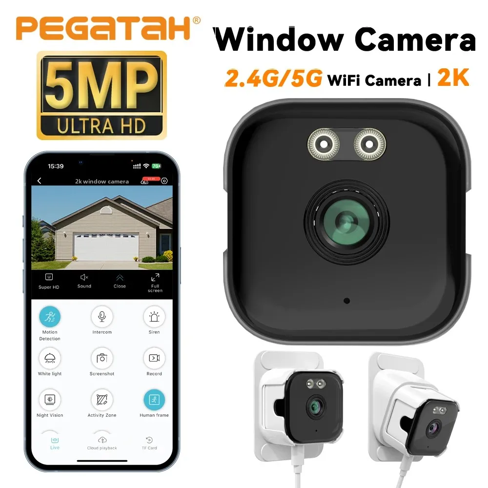 2K 5MP Window Camera, 2.4G/5G WiFi Indoor Security Camera with Color Night Vision Human Detection 2-Way Audio, Quick Installation