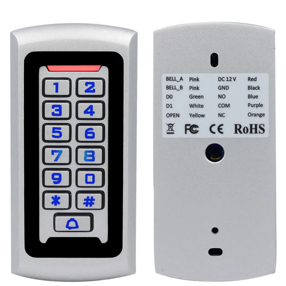 Metal Rfid Access Control Keypad With 1500 Users 125KHz Card Reader Keypad Key Fobs Door Access Control System WG Wiegand Reader