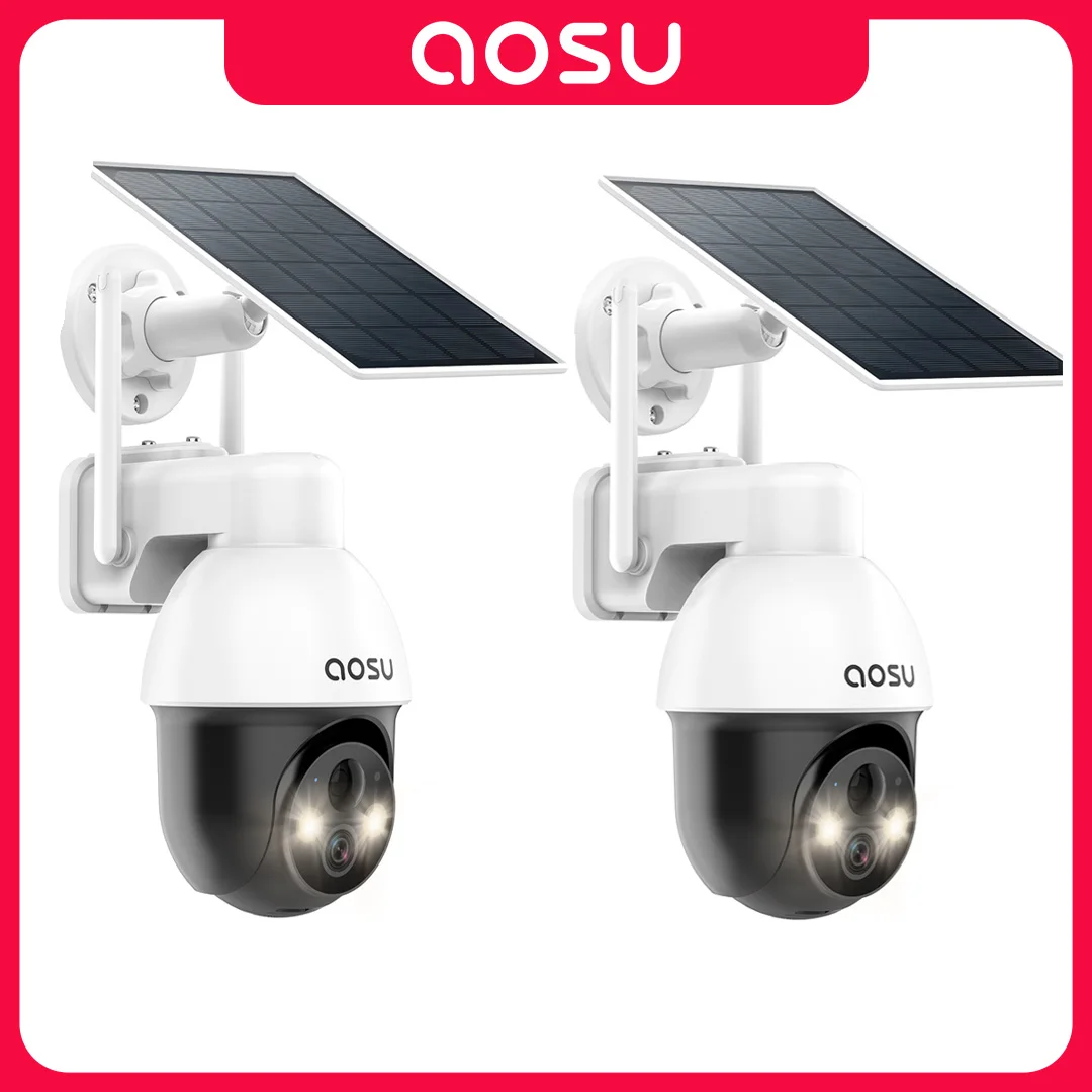 AOSU 3MP PTZ Solar WiFi Camera 2/3/4 pcs Wireless 5000mAh battery Security Camera PIR Detection 2-Way Audio Outdoor CCTV Camera
