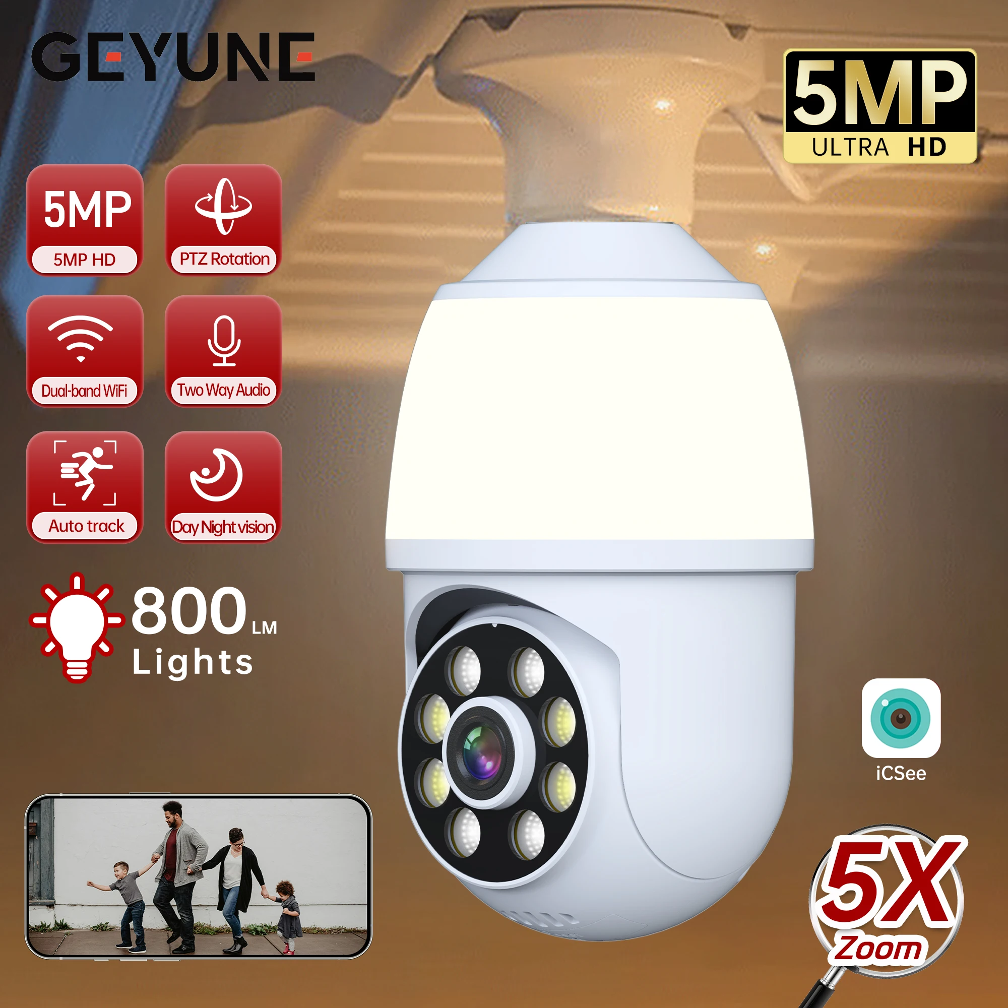 5MP E27 Bulb Camera Wifi Surveillance with LED Bulb PTZ 10X Zoom Ai Human Tracking Two-way Audio Night Vision Wireless Cam ICSEE