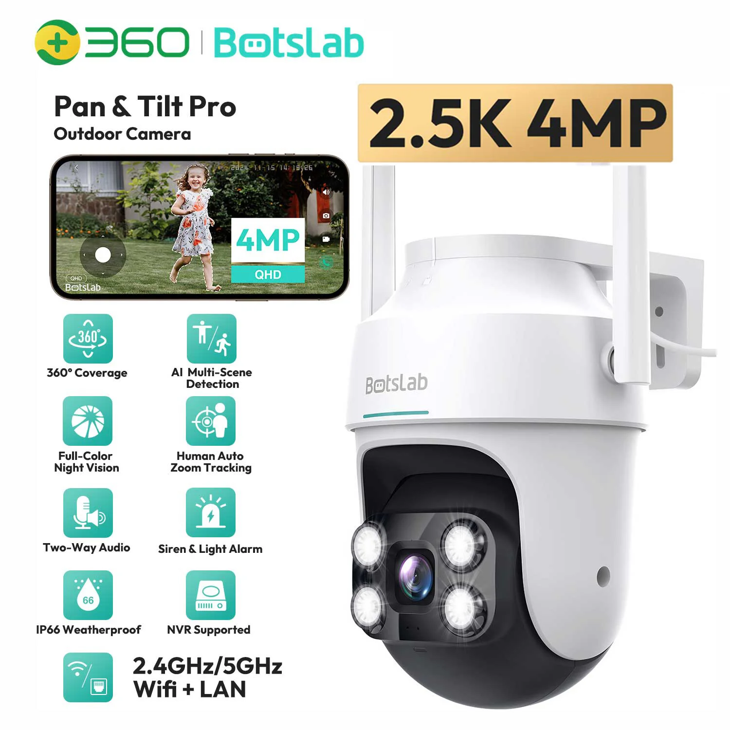Botslab 2.5K4MP HD Outdoor Camera Wireless PTZ Smart Home Wi-Fi Camera CCTV Night Vision Siren and Light Alarm IP66 Weatherproof